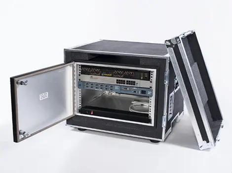 For reliable secure transit, the optional transit cases offer heavy duty casters, four locking latches mounted on the cabinet, four secure keyway locks mounted on the transit case, and removable side caps for easy access.