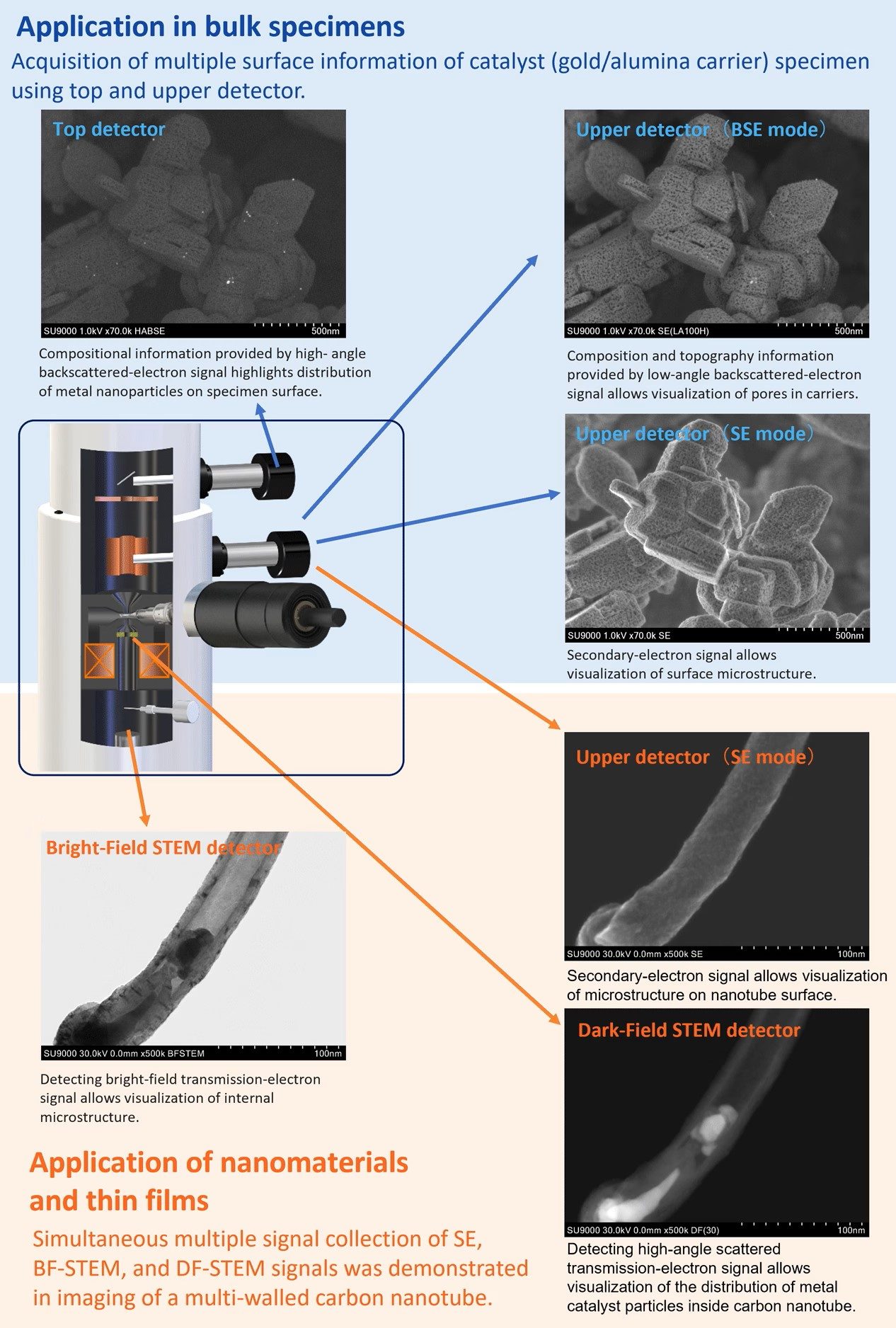 - New LV STEM capabilities: the position of the BF/DF Duo STEM can be regulated to control the detection of scattering signal from low to high angle in dark-field mode. Low aberration in-lens objective lens and optical system optimized for STEM observations. Lattice images can be observed in SEM/STEM