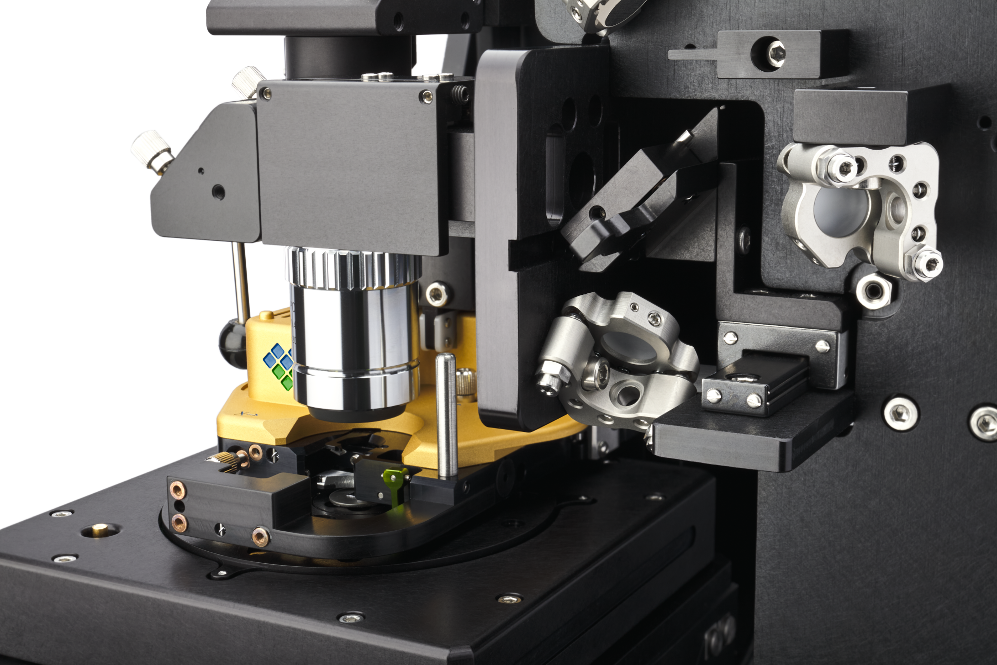 Quick-change optics: Pre-aligned optics make switching between PiFM + PiF-IR, sSNOM, and Raman effortless. Robust laser integration A 3D-actuated PM mirror keeps excitation lasers aligned to the apex of the AFM tip for all types of tip-enhanced measurements, including PiFM, PiF-IR, s-SNOM, and tip-enhanced Raman.