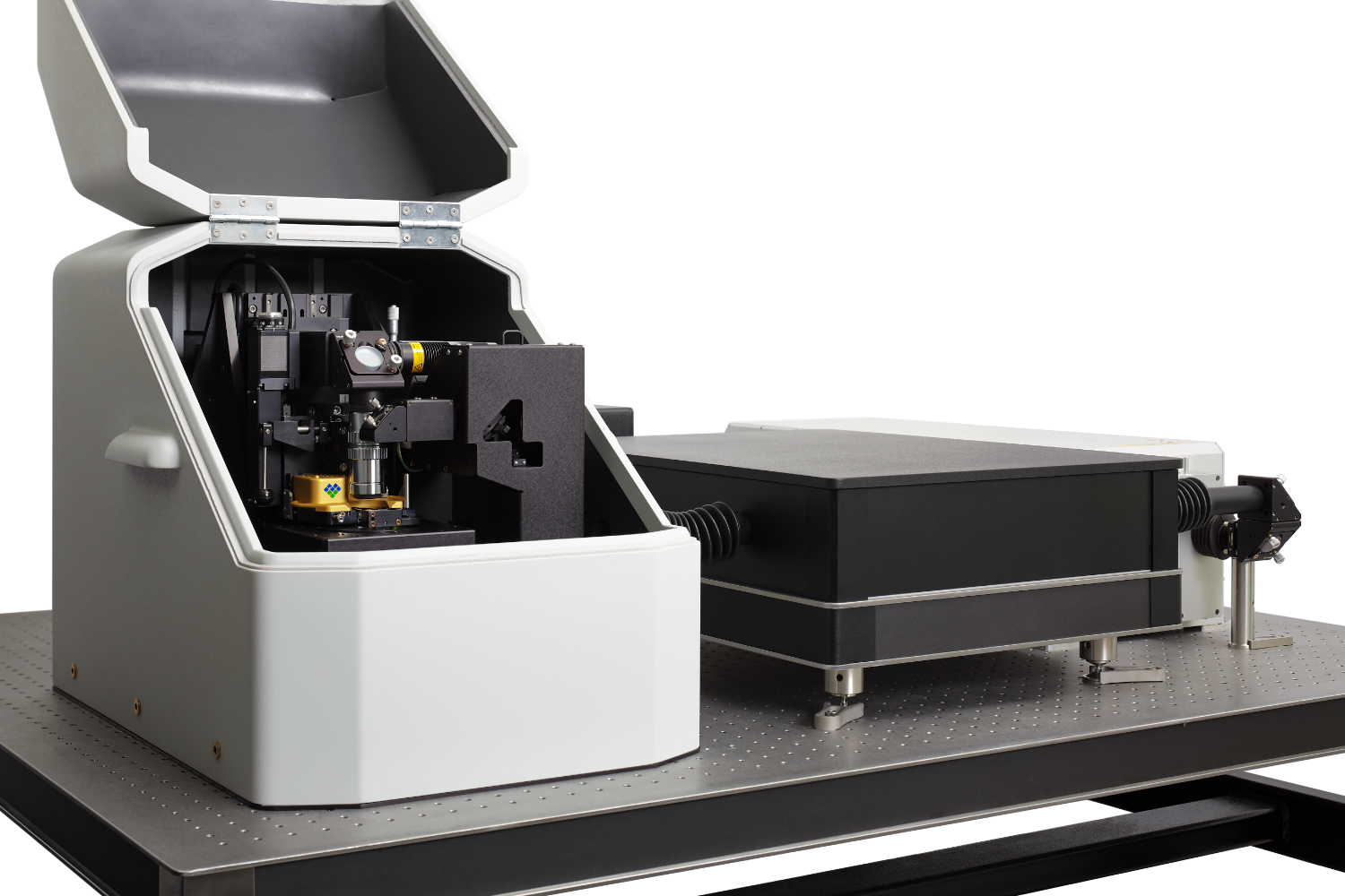 Accessible design: Easy sample access and a one-handed AFM head clamp make tip and sample exchanges a breeze. The lightweight removable enclosure and open design make optical alignments easy.