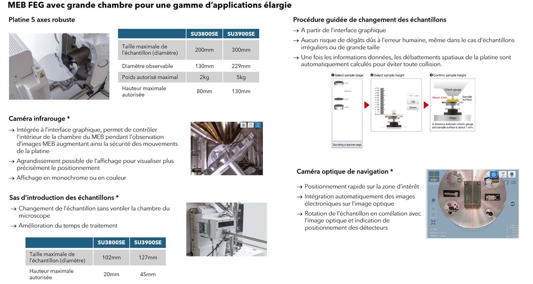 Les MEB à effet de champ à cathode chaude SU3800SE et SU3800SE Plus permettent d’accéder à la très haute résolution, sans compromis sur la taille, la variété des échantillons et les capacités analytiques.